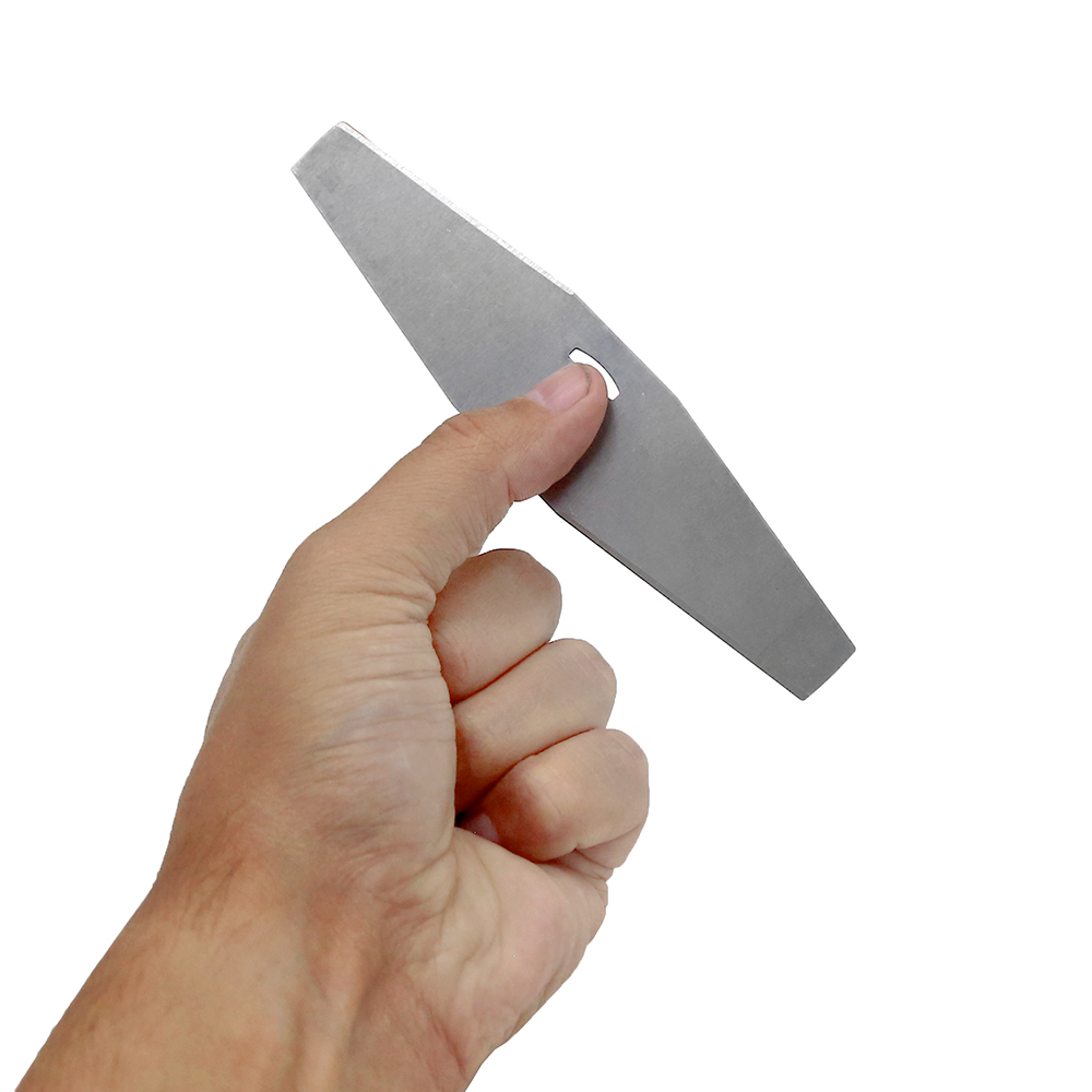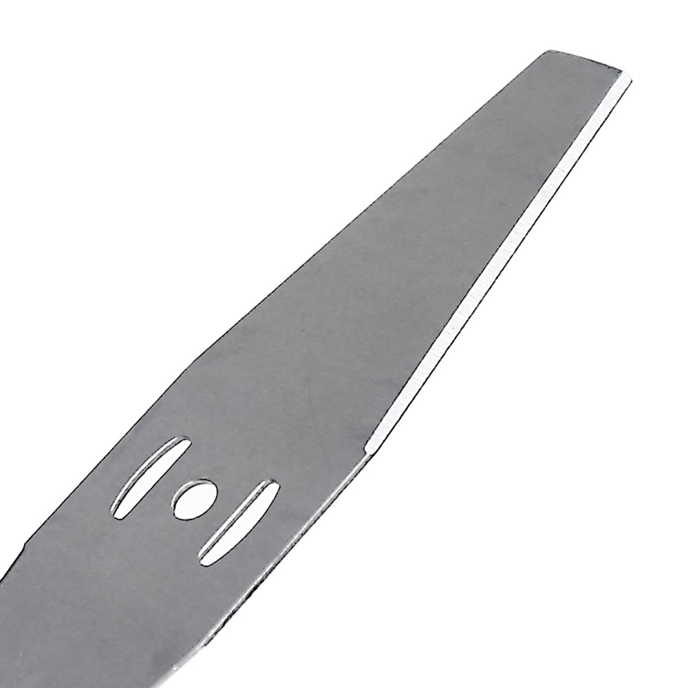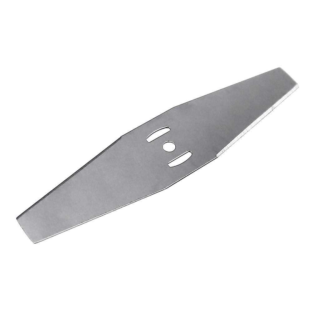 Construída com aço resistente, a lâmina oferece durabilidade. Suas duas pontas permitem corte eficaz e desbaste em vegetações densas. As dimensões de 14.5x28cm otimizam a cobertura por passada e o encaixe é simples e seguro em máquinas à bateria.