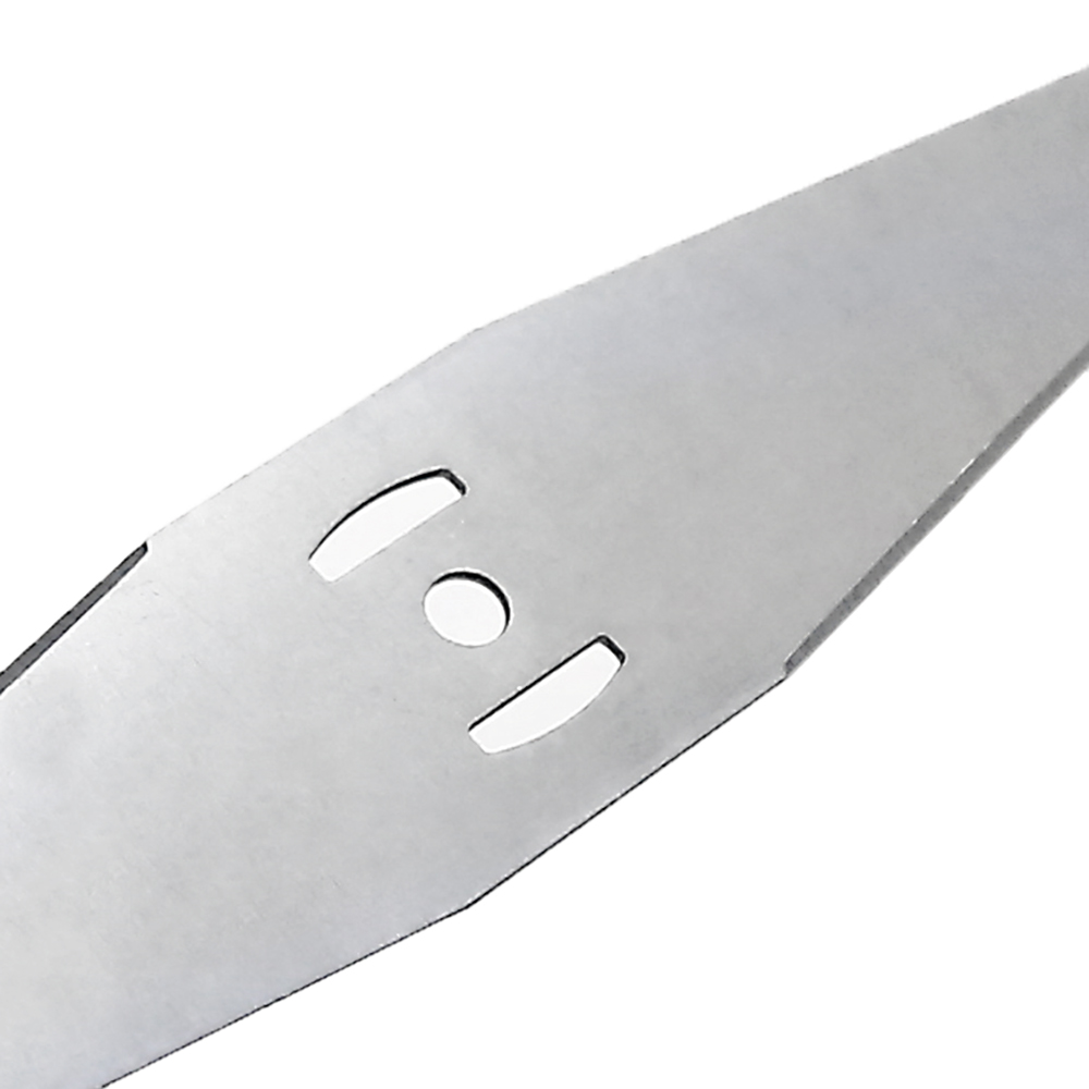 A Lâmina Tipo Faca 2 Pontas DKBGTS01 é projetada para se destacar em roçadeiras e aparadores alimentados por bateria. Sua eficiência de corte e desbaste a torna ideal para vegetações densas.