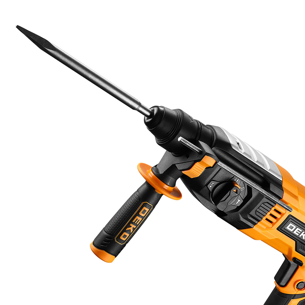 Martelete Perfurador Rompedor Combinado de Impacto da DEKO, é uma ferramenta com alta potencia projetada para realizar uma variedade de tarefas de perfuração, impacto e rompimento. Com força de impacto de 3.2J, ele oferece a potência necessária para enfrentar trabalhos pesados.