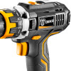 A Parafusadeira/Furadeira sem Fio de motor potente possui velocidade variável, mandril sem chave, luz de trabalho LED que auxilia a operação em locais com pouca iluminação, e conta com 15+1 configurações.