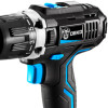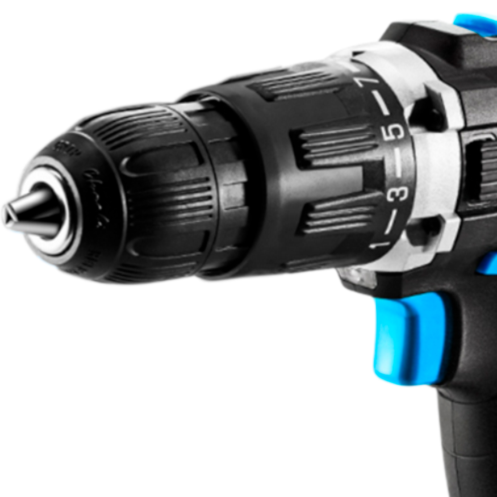A Parafusadeira/Furadeira sem Fio possui velocidade variável, mandril sem chave, luz de trabalho LED que auxilia a operação em locais com pouca iluminação, e conta com 15 + 2 configurações.